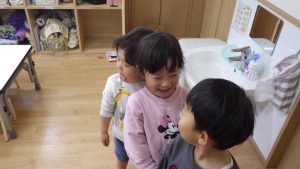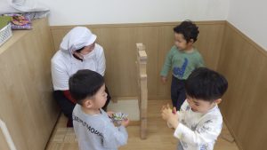 子どもたちも保育者の関わりを真似するようになり、お友達が困っていると助け、思いやりをもった行動が増えていったように感じます。