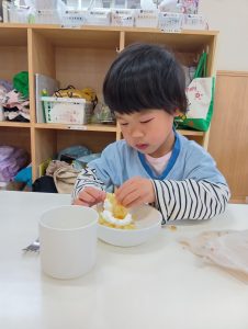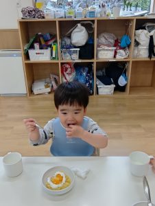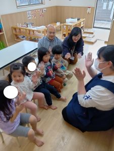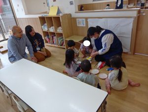 そら組ではH君のお誕生日䌚でした。お誕生日の歌をみんなで歌い、嬉しそうにするH君。