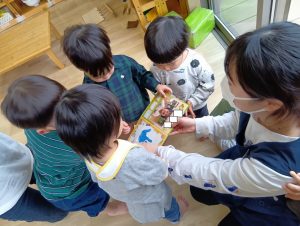 最埌は保育者からお誕生日カヌドのプレれントです。自分の写真や手圢をみお喜ぶ姿も芋られたした。Y君歳のお誕生日おめでずうございたす。