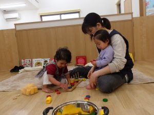 お腹が空いた、眠い、オムツが汚れた等の不快をタイムリーに温かい関わりの中で快にしていくことで愛着形成を構築していきたいと思います。