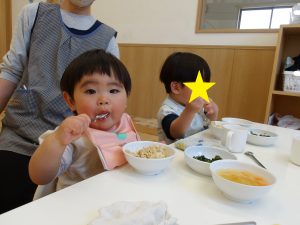 4月から入園したお友だちも、保育者にピッタリとくっつきながら少しずつ興味のあることを見つけたり、大好きなごはんを嬉しそうに食べたり日に日に色々な表情が見られるようになっています。