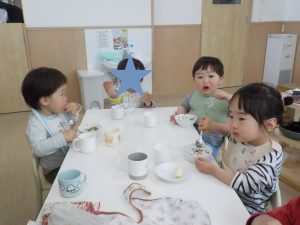 日常の中の様々な場面で保育者と言葉のやりとりを楽しみながら信頼関係を構築していきたいと思います。