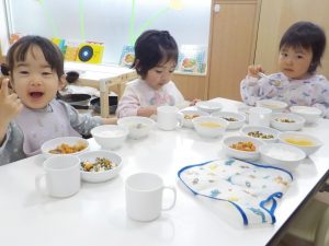 お散歩から戻る時には「今日の給食何かな?」と楽しみにする様子があります。