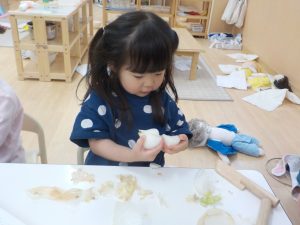 ちぎるだけではなく、手で握って感触を楽しむ子もいましたよ。