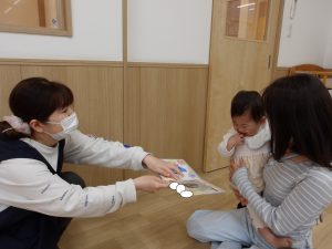 最後は保育者からお誕生日カードのプレゼントです。Y君Sちゃん2歳のお誕生日おめでとうございます。