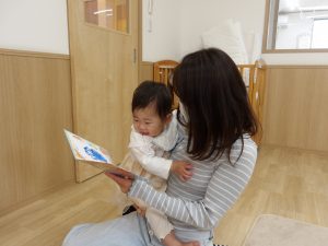 4月のお誕生日会の様子をお伝えします。ほし組ではEちゃんのお誕生日会でした。保育者がお誕生日の歌を歌うと、興味を示していました。保育者が絵本を読むと、絵に関心を持ち観察する姿も見られましたよ。