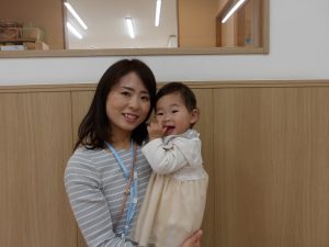 最後は保育者からお誕生日カードのプレゼントです。Eちゃん1歳のお誕生日おめでとうございます。
