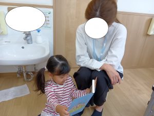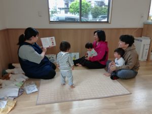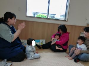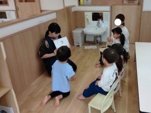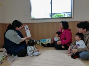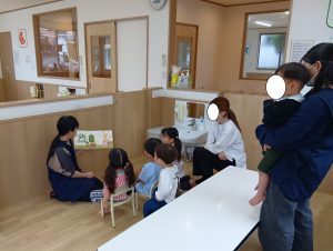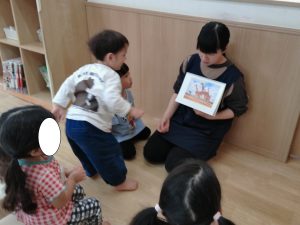 仕掛け絵本では次はどの動物が出てくるか子どもたちも考えて答えたり、出てきた動物の名前を答えていました。