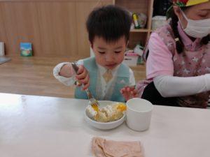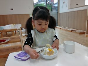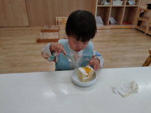 午後おやつの誕生日ケーキではみんな美味しそうに食べてましたよ。保護者の皆さま、お誕生日へのご参加ありがとうごさいました。