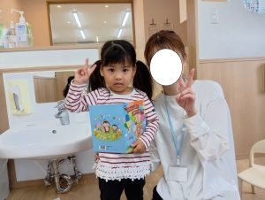 最後は保育者からRちゃんにお誕生日カードのプレゼントです。Rちゃん3歳のお誕生日おめでとうございます。